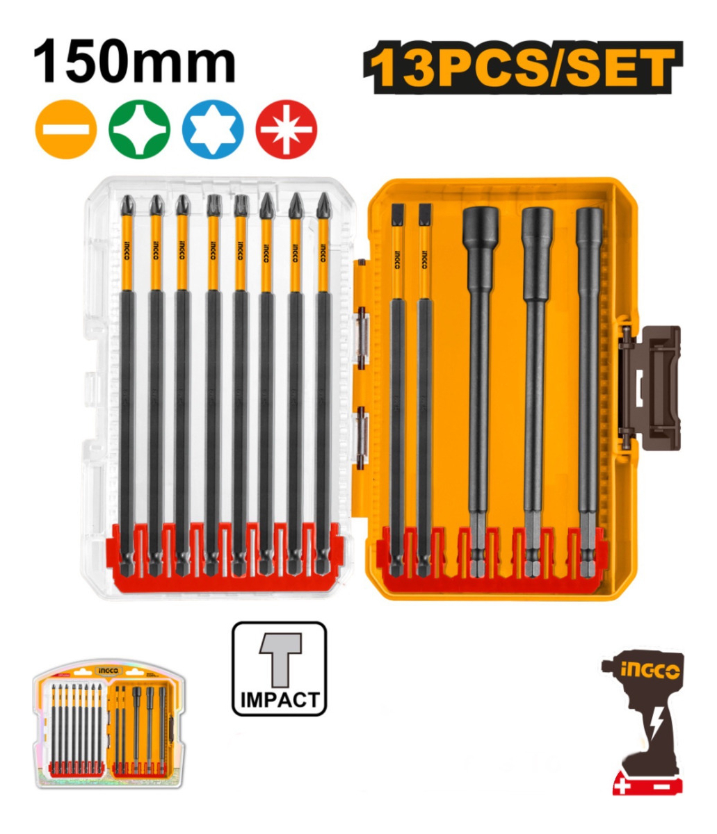 13 Puntas Impacto 150mm Ph1 Ph2 Ph3 Pz1 Pz2 Pz3 Torx Ingco