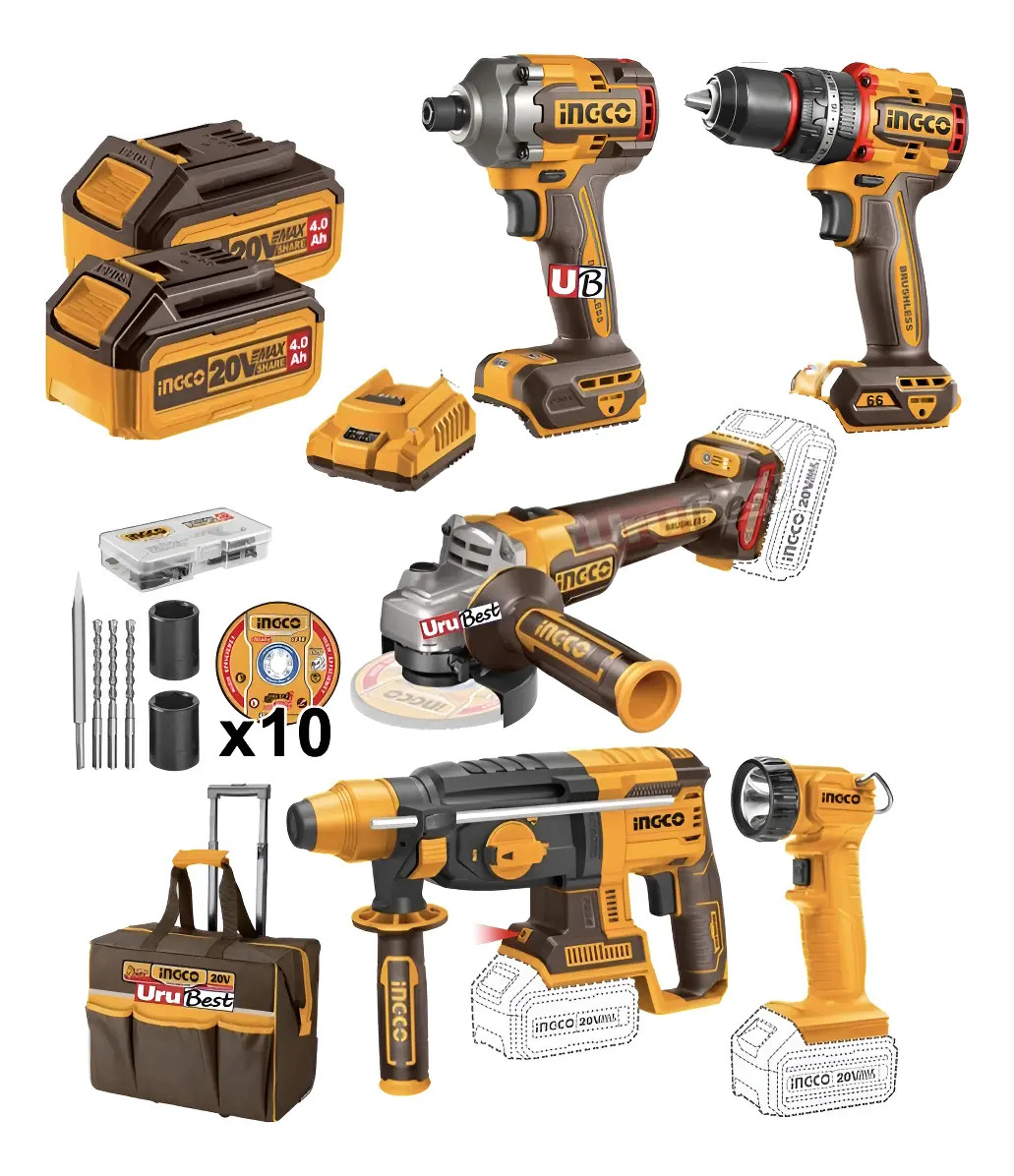5 Herramientas Ator Impacto Taladro Rotomartillo Ingco 20v