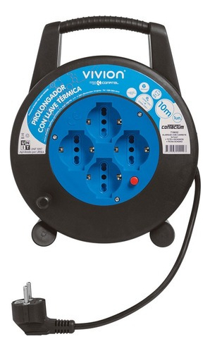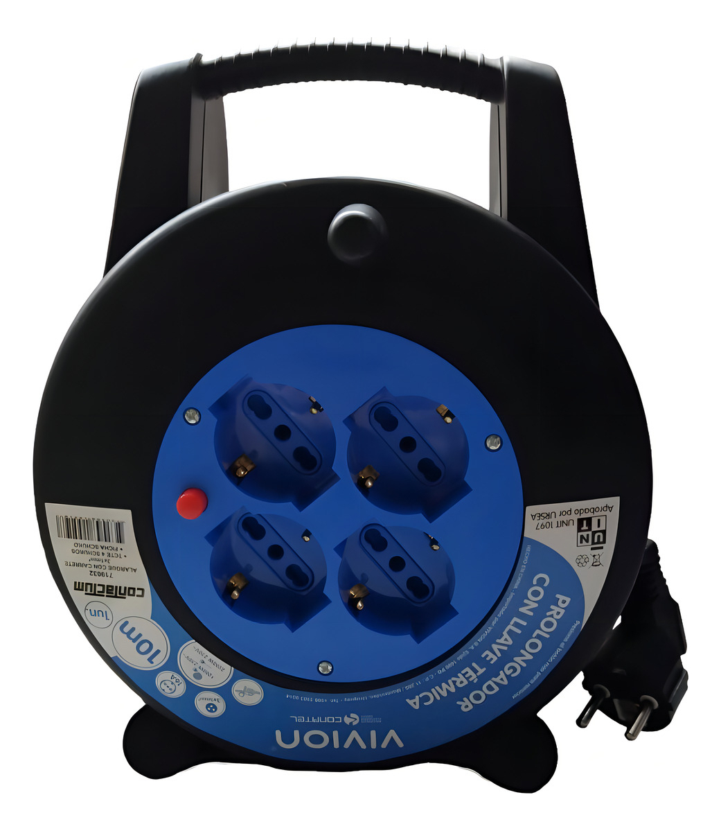 Alargue Carrete Enrollador 10 Metros 4 Tomas Shucko Vivion