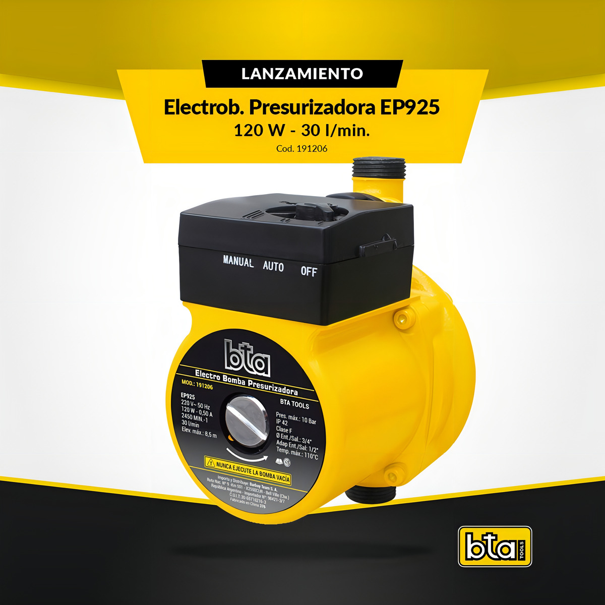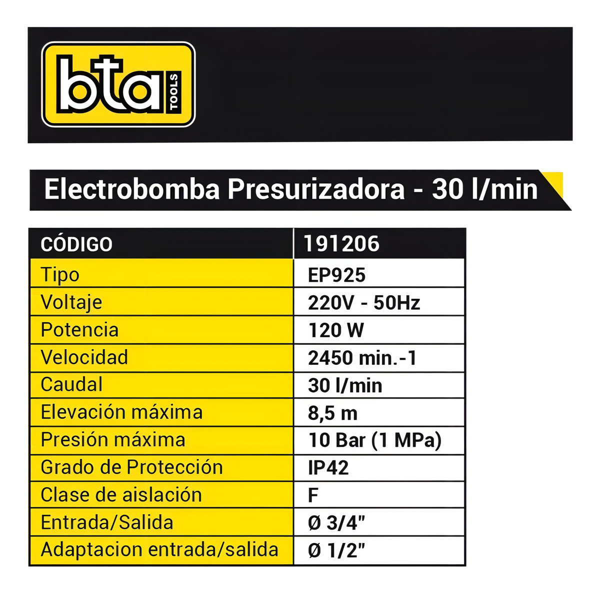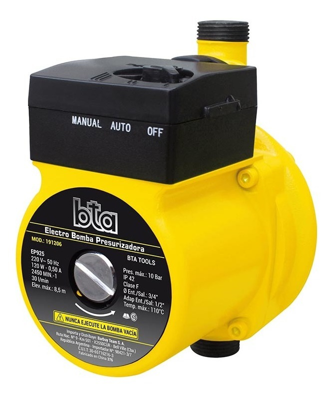 La bomba BTA permite aumentar la presión de agua de una red hidráulica. Este producto cuenta con una entrada o tubo que aspira el agua y, posteriormente, este líquido es impulsado por un motor hacia el tubo de salida. Esto hace que el agua salga con mucha más presión y rapidez. No dudes en revisar sus características, ya que esta podría ser una excelente opción.