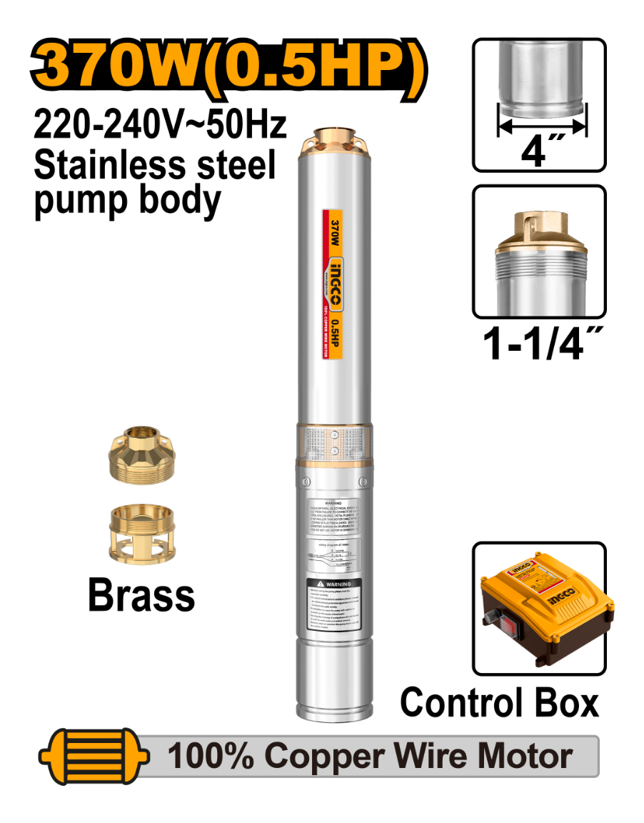 Bomba Sumergible Pozo Profundo 4 370w Ingco Dwp370621
