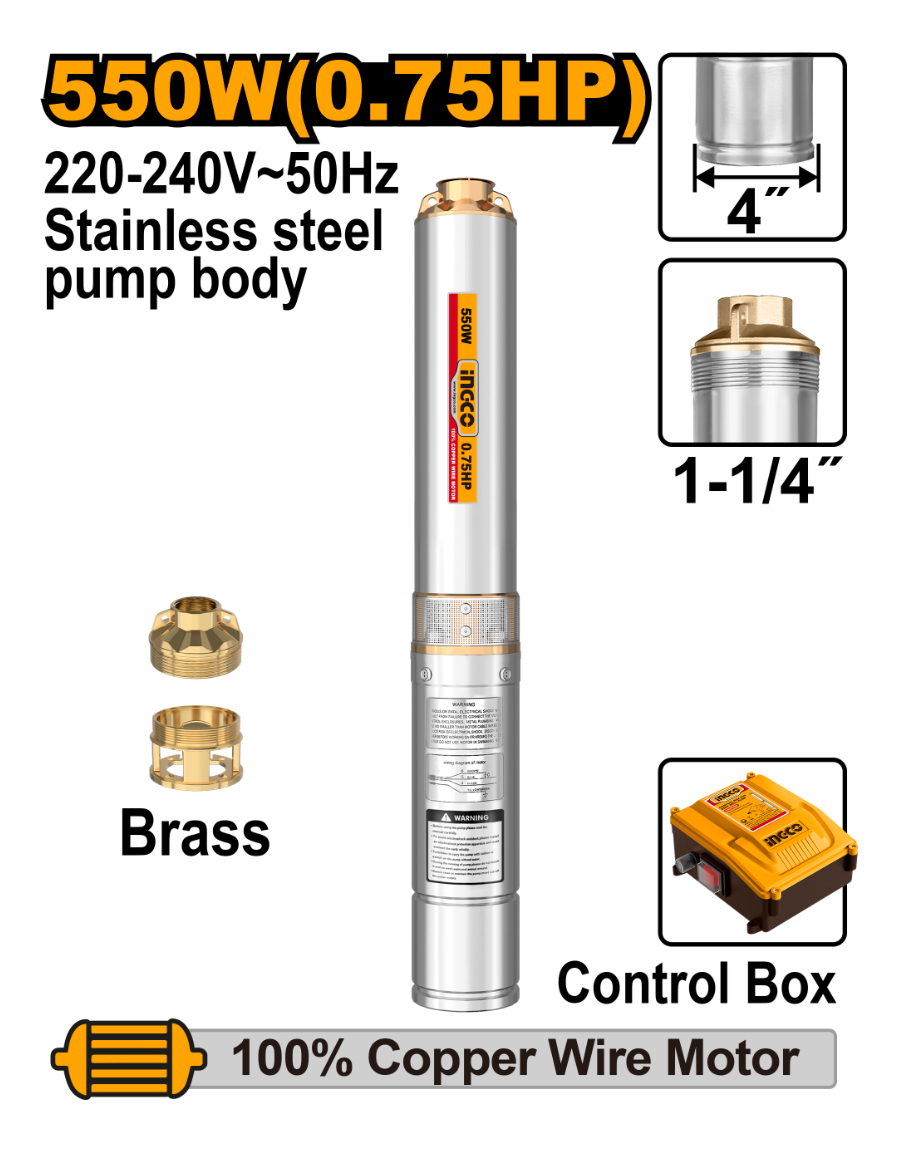 Bomba Sumergible Pozo Profundo 4 550w Ingco Dwp550621