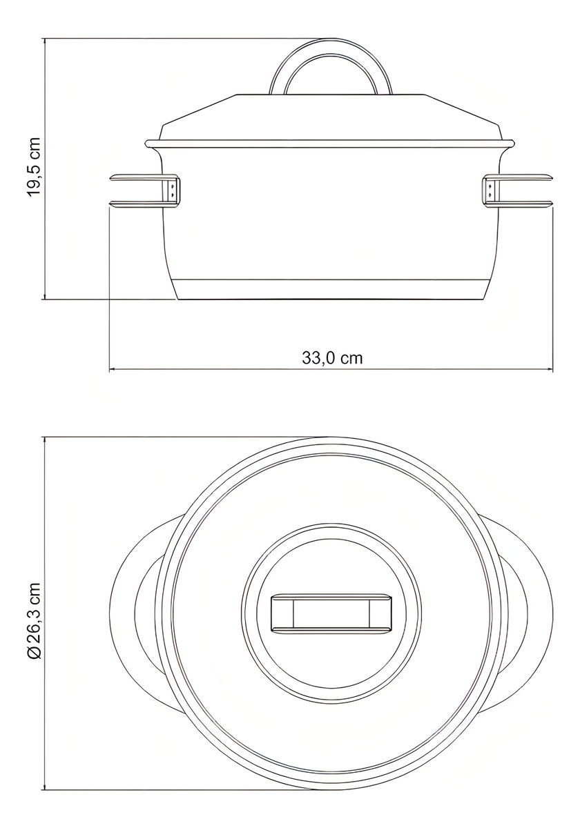 La capacidad volumétrica máxima para cocinar es 3/4 de la capacidad total de la pieza. Antes de su uso, se recomienda lavar. Use una fuente de calor baja para evitar que los alimentos se peguen al fondo de la cazuela. El triple fondo distribuye el calor de manera uniforme, por lo que no es necesario utilizar altas temperaturas, lo que también contribuye al ahorro de energía. En una estufa de gas, la llama no debe ir más allá de la base de la cazuela y, en una placa eléctrica, la placa debe tener un diámetro igual o menor que el de la cazuela. No caliente el alimento colocando un cazo sobre otro del mismo diámetro. No dejes la olla vacía sobre una fuente de calor. Deje las cazuelas calientes solo en superficies resistentes al calor. Disuelva siempre la sal en agua hirviendo o con los alimentos, revolviendo al principio de la cocción. Para eliminar las manchas, use jugo de limón o vinagre, o la pasta Tramontina específica. Evite dejar los alimentos en la cazuela durante demasiado tiempo, ya que la sal puede provocar manchas y corrosión. Para mantener el brillo, lávala con un detergente suave y una esponja. En las partes mate, puedes usar el lado más abrasivo de la esponja con jabón líquido. Enjuaga con agua caliente y seca inmediatamente para evitar manchas. Se recomienda volver a apretar periódicamente las cazuelas o tapas con tornillos. Se puede colocar en el horno a una temperatura máxima de 260 °C. Los mangos, empuñaduras y empuñaduras se calientan durante la cocción, por lo que se recomienda el uso de guantes o paños. Úselo solo hasta la capacidad máxima indicada en la parte inferior del producto. Compatible con el vaporizador 62510/200.