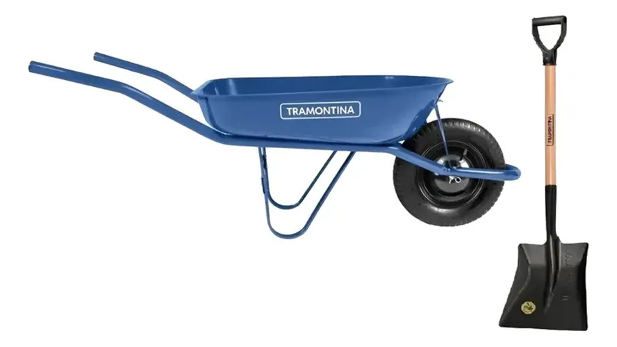 CARRETILLA TRAMONTINA DE 55LTS RUEDA INFLABLE + PALA DE PALEAR TRAMONTINA MANGO PVC