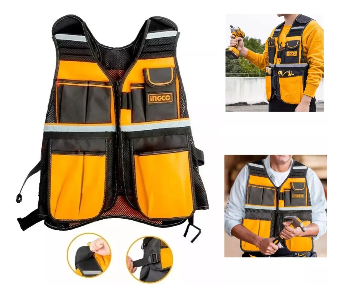 Chaleco Portaherramientas Ajustable 17 Bolsillos Ingco