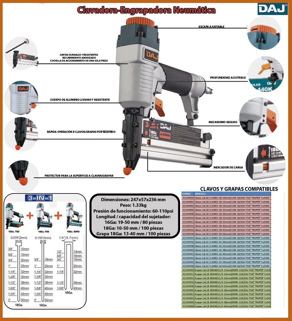 Clavadora Engrapadora Neumatica Grapa C.18-clavo C.16-18 Da