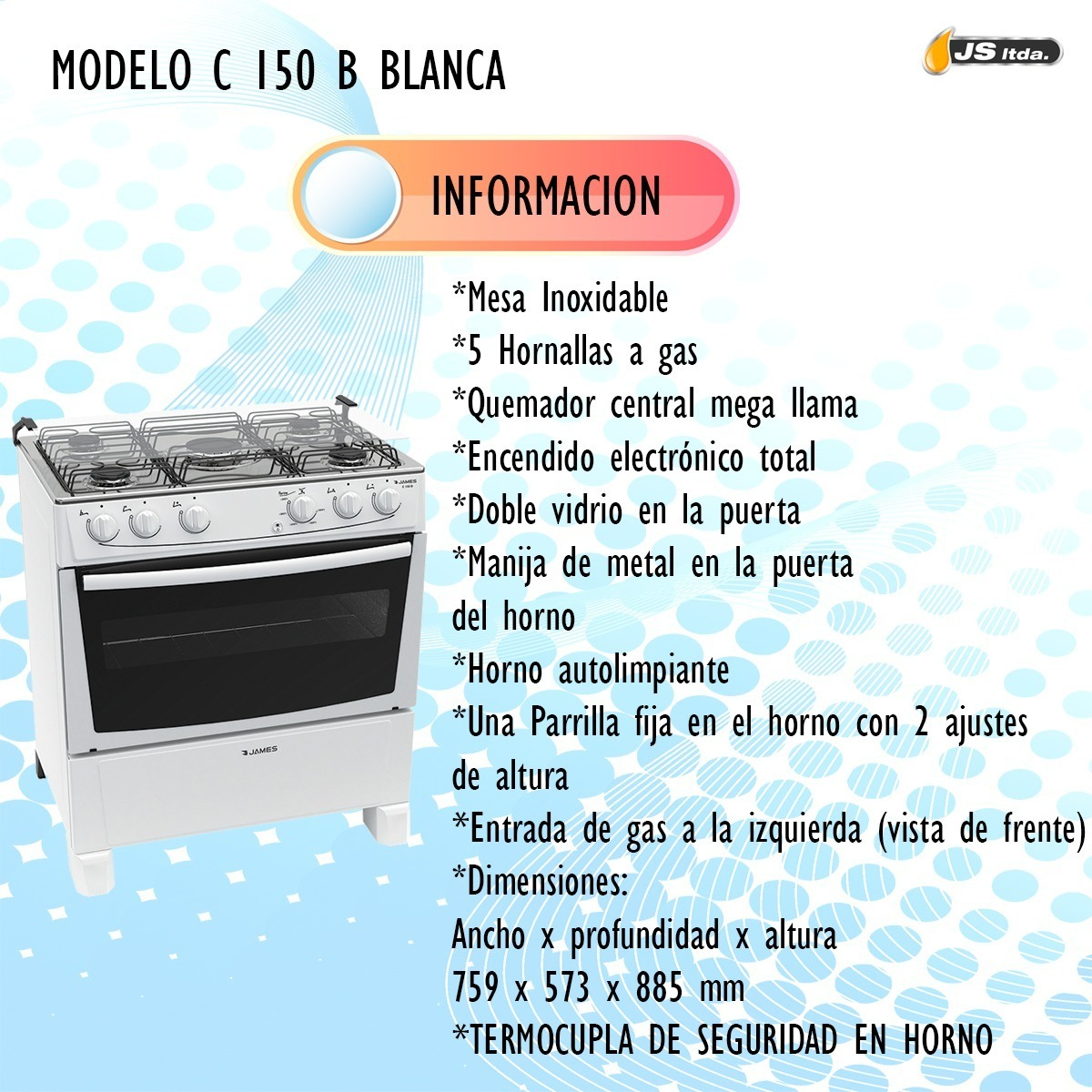 Sé el primero en valorar “Cocina James C 150 B 5 Hornallas Encendido Eléctrico Color Blanco”