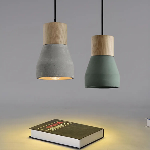 Colgante Símil Concreto Claro Con Madera – Ixec Ix9064