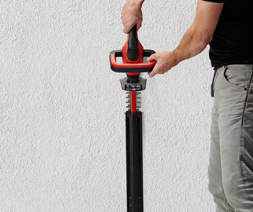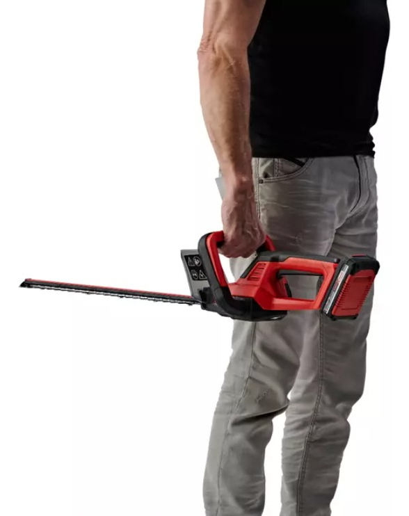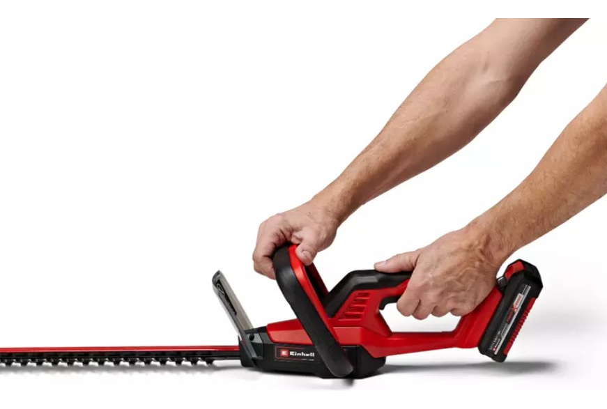 El recortasetos con batería GC-CH 18/40 Li Solo de Einhell reúne potencia y flexibilidad: Como miembro de la familia Power X-Change de Einhell, el recortasetos se acciona por una de las potentes baterías de iones de litio de la serie. El recortasetos pequeño y manejable es un verdadero «peso ligero» y cómodo en el manejo debido al bajo peso. El robusto engranaje metálico está diseñado para una larga duración y aporta la perfecta conversión de la potencia de batería en la cuchilla de acero cortada por láser, afilada por diamante. Un interruptor de seguridad a 2 manos protege al usuario durante el funcionamiento. El alcance del envío contiene una cubierta de cuchilla de aluminio para proteger la cuchilla y una protección contra choques con soporte para montaje en pared y un estable carcaj para almacenamiento y transporte. Las baterías de la serie Power X-Change de alta calidad pueden combinarse sin límites con todos los equipos del sistema. Para el funcionamiento del recortasetos con batería es necesaria una batería PXC de 18 V. El envío se realiza sin batería ni cargador, estos son adquiribles por separado, por ejemplo, como un práctico set para principiantes. / / Distancia entre dientes 13 mm