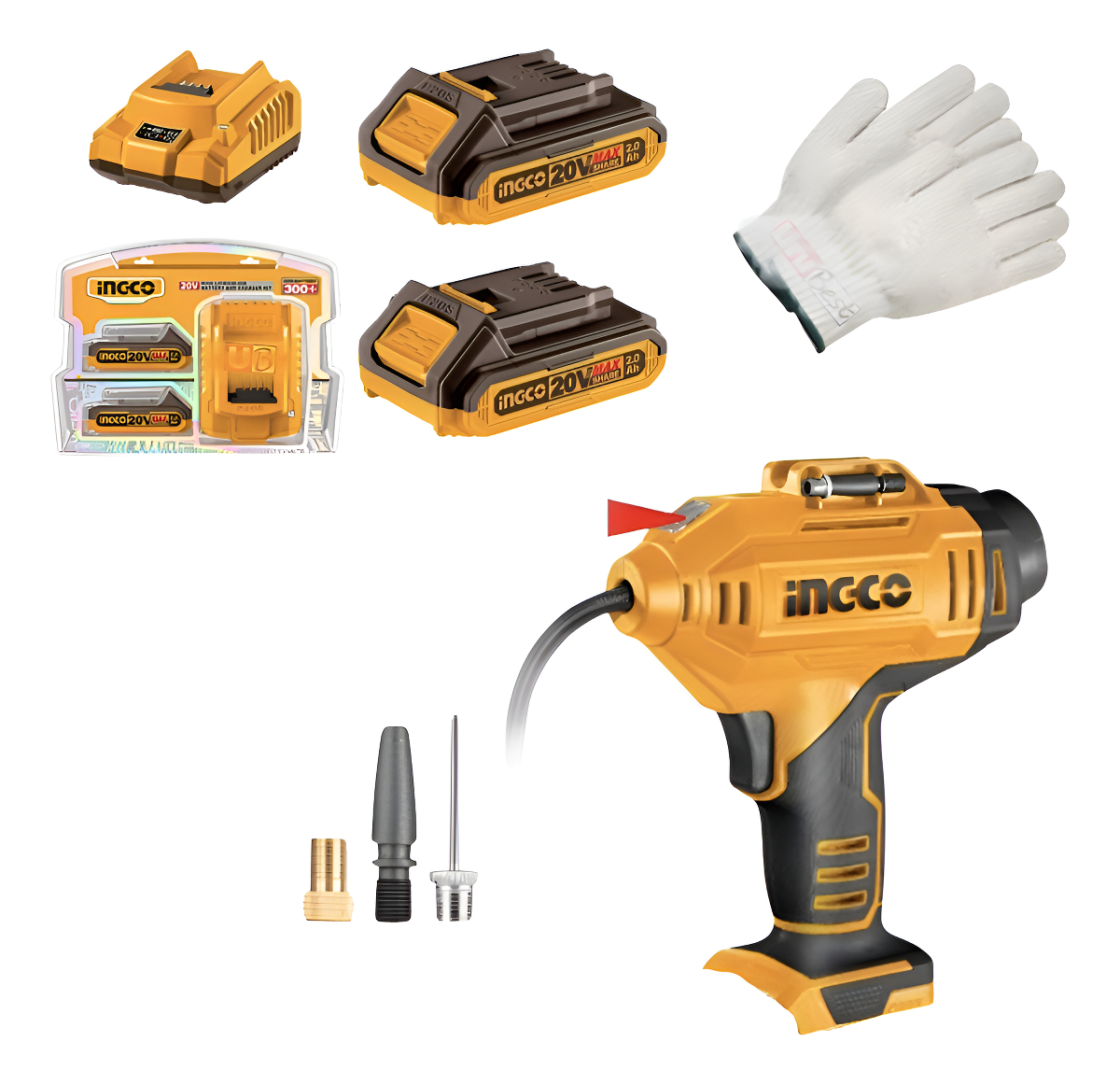 Inflador Compresor 20v Ingco Cacli2018 +2 Baterias Y Carg.