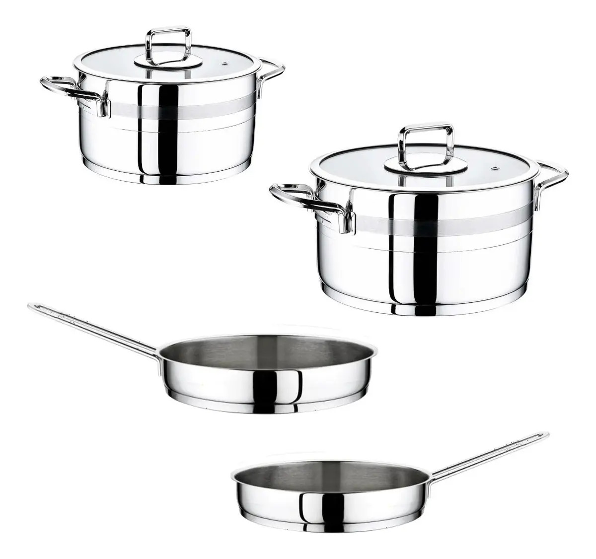 Juego Bateria Cocina Acero Inox 4 Piezas Triple Fondo