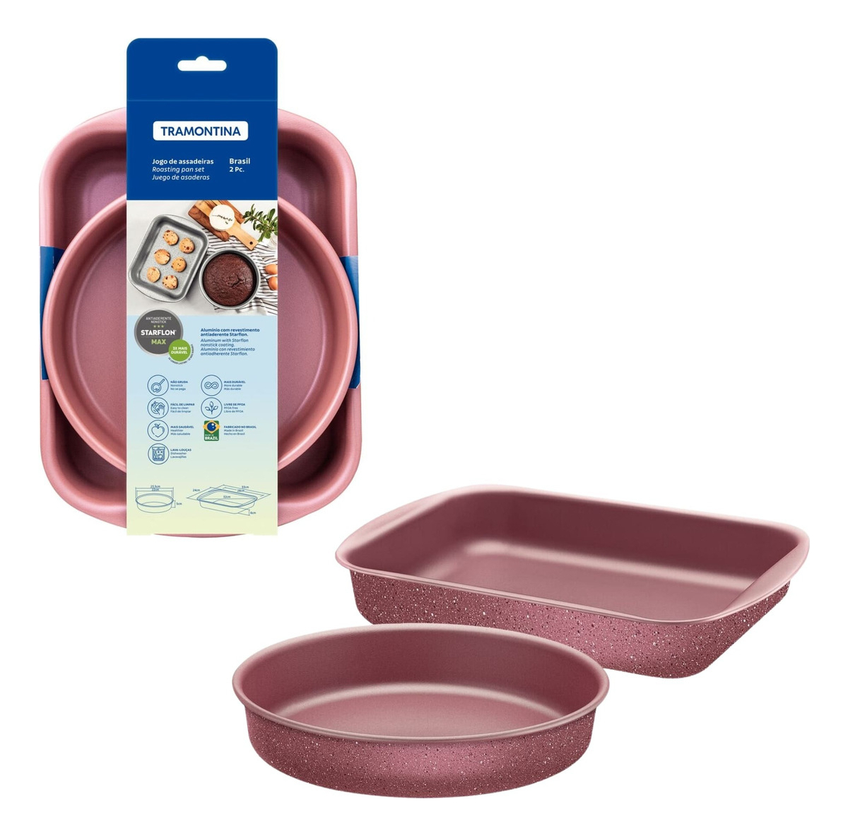 Tramontina Brazil de 2 piezas Estás a punto de dar un paso importante en la cocina, transformando tu experiencia culinaria en algo extraordinario. El juego de sartenes antiadherentes de 2 piezas Tramontina Brasil en color rosa es la elección perfecta para usted. El cuerpo de aluminio del juego de bandejas para hornear Tramontina tiene un grosor especial que proporciona una cocción rápida y uniforme. Con él, puede cocinar sin preocupaciones, ya que nada se pega a la superficie, lo que hace que la limpieza sea muy fácil. Y lo mejor de todo es que es totalmente seguro para tu salud, ya que no contiene PFOA, una sustancia nociva que definitivamente querrás evitar en tu cocina.