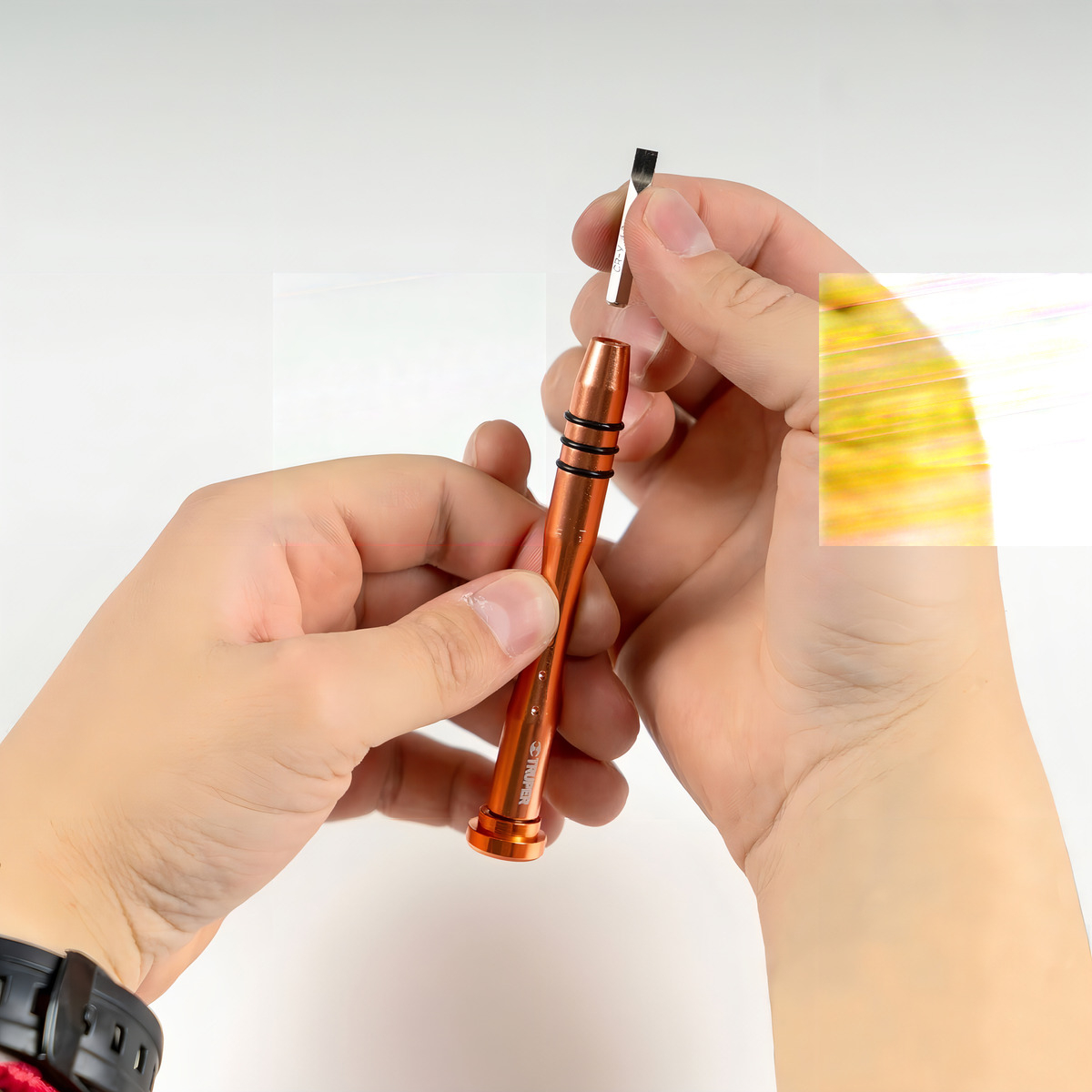 9 puntas planas: 0,7 mm – 1 mm – 1,2 mm 1,5 mm – 2 mm – 2,5 mm 3 mm – 3,5 mm – 4 mm