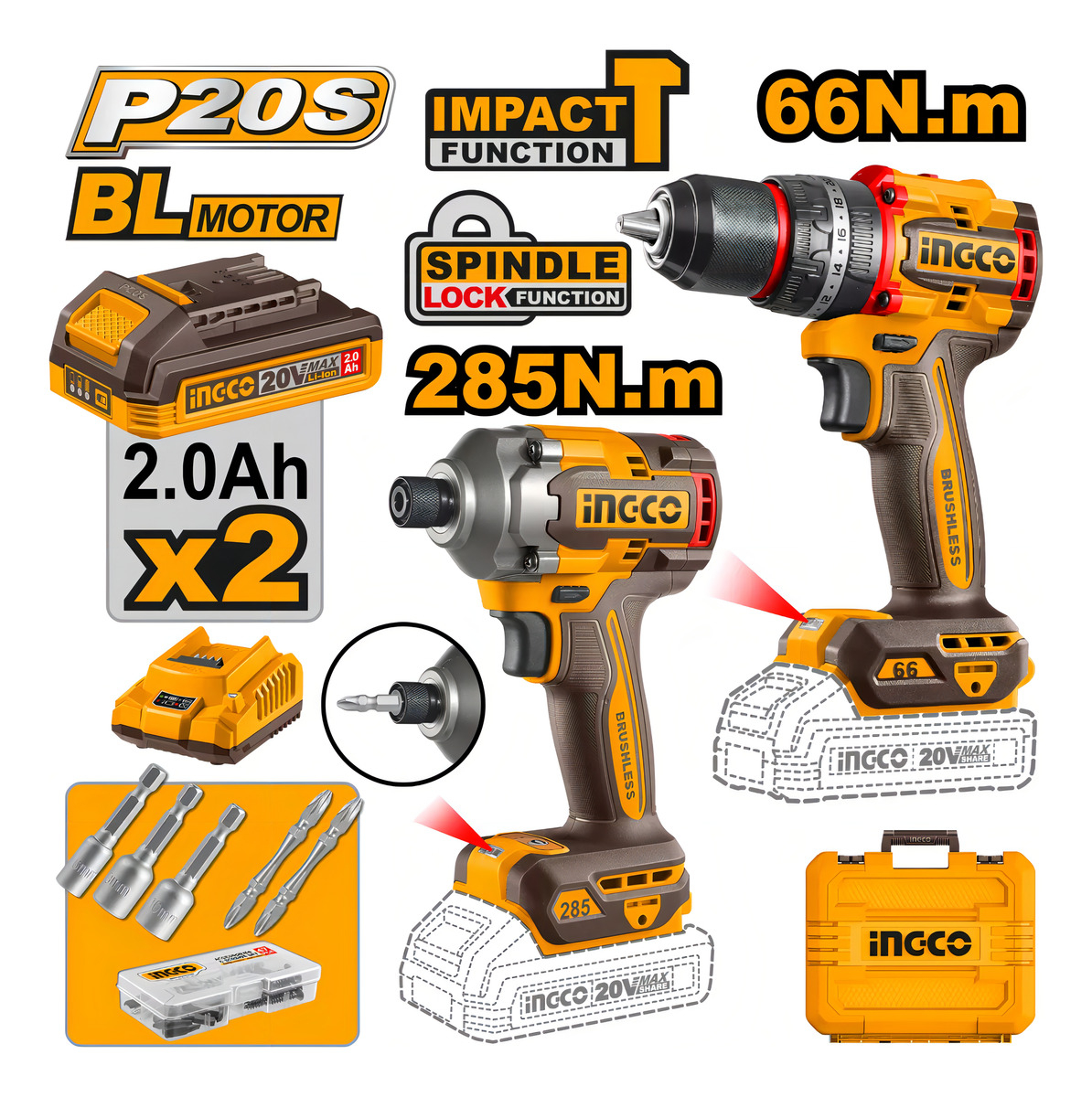 / Kit Taladro Atornillador Percutor 66nm + Impacto Ckli20277