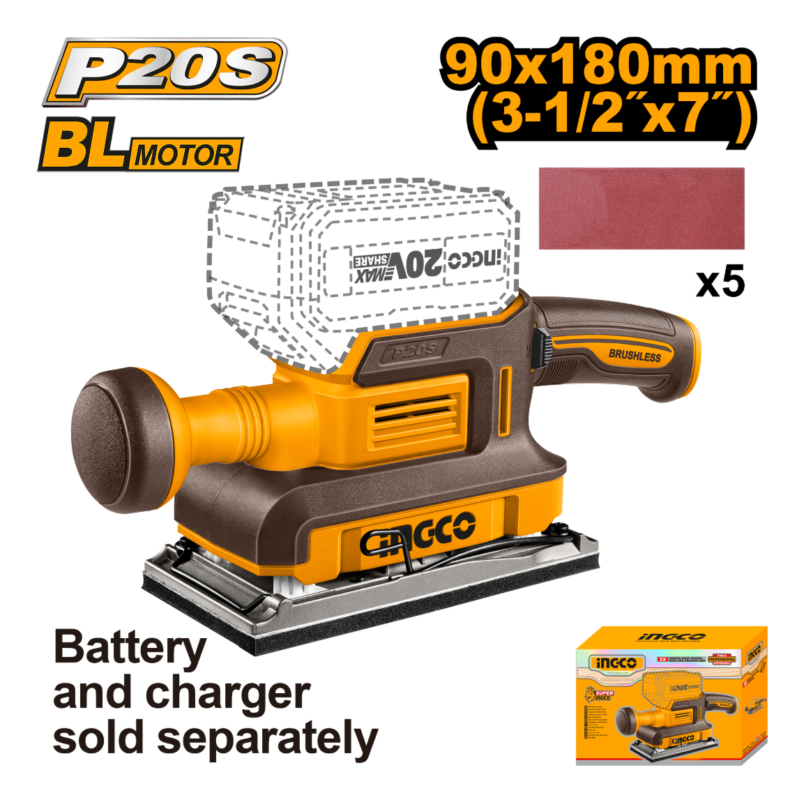 Lijadora Orbital Bl Sin Batería 20v Ingco Cfsli2031
