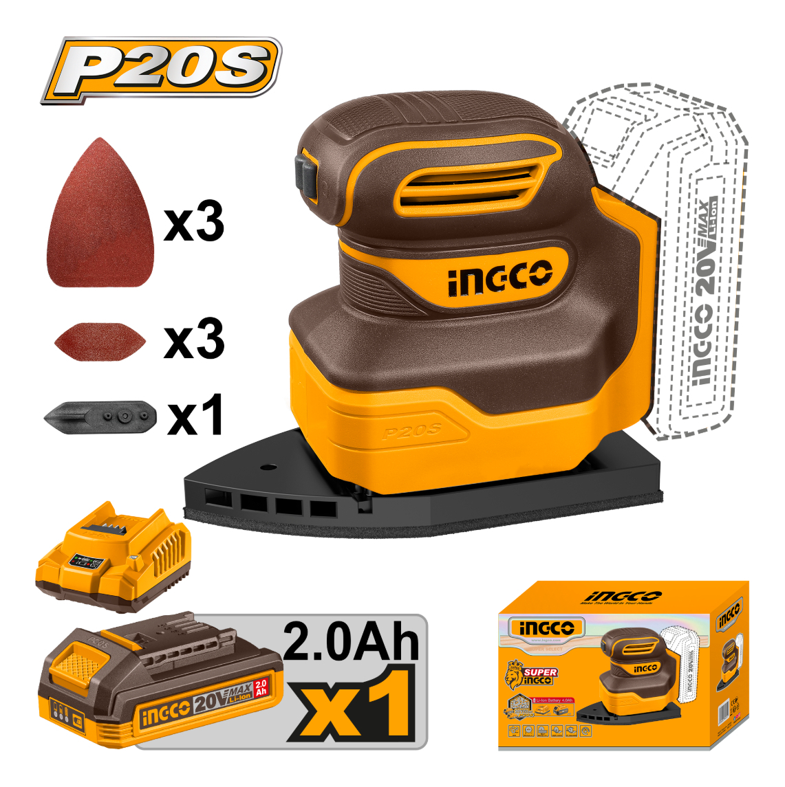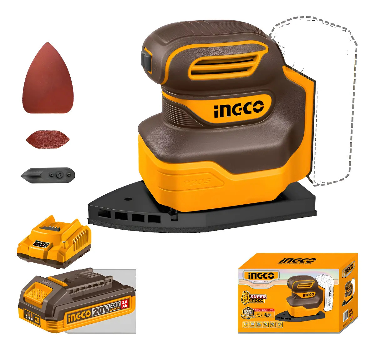 Lijadora Orbital Delta 20v Con Batería Cargador Lijas Ingco
