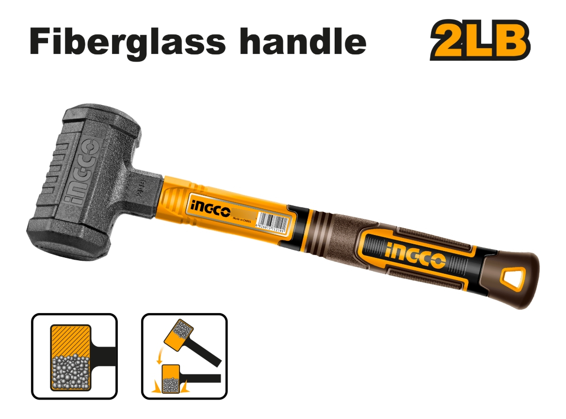 Maceta Martillo De Goma 900g Mango De Fibra Ingco Hdbm08028