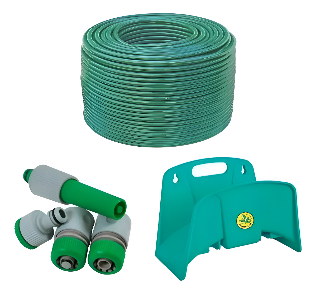 Manguera 30 M Flex Tramontina + Soporte Pared + Kit Conector