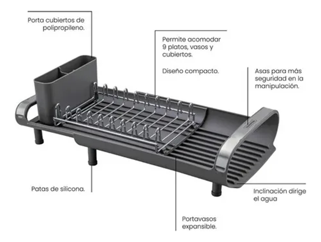 Materiales: Acero inoxidable con secador y portacubiertos compacto grafito.