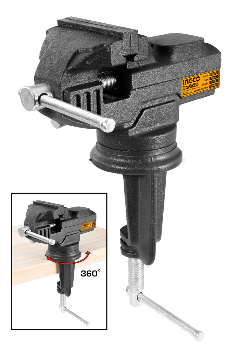 Morsa De Banco Mesa 60mm Ingco Hbv082 Giratoria Joyero