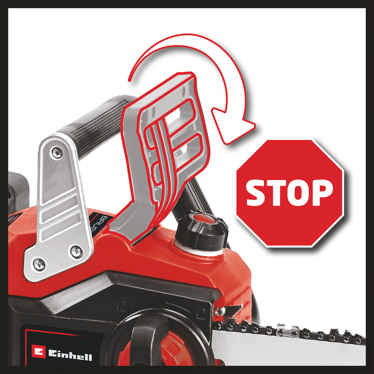 Protección antirretroceso con frenado inmediato de la cadena.