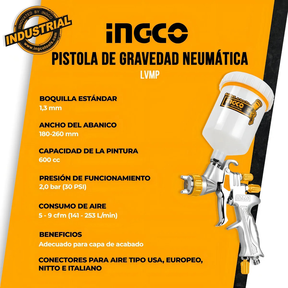 Pistola Para Pintar De Gravedad Lvmp Ingco 600 Ml Industrial