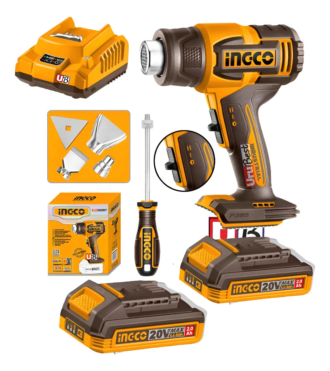 Pistola De Calor 20v +2 Baterias Y Cargador Ingco Hgli206