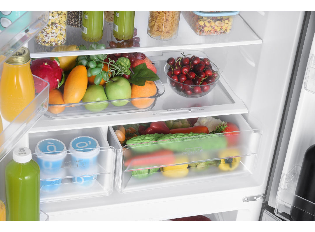 • Refrigerador: 4 estantes de vidrio templado antiderrame / 2 cajones transparentes