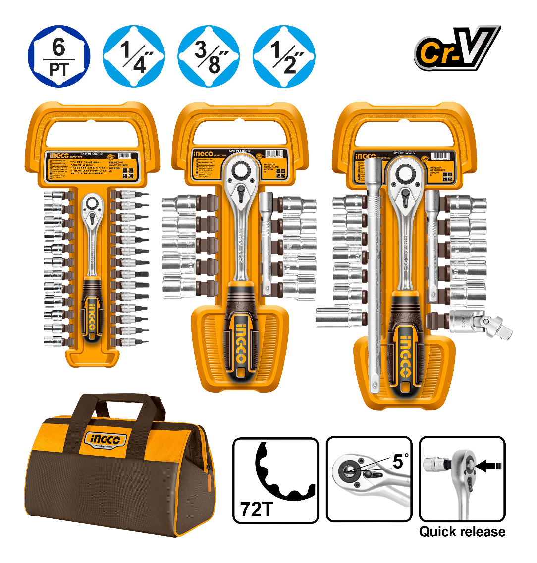 SET 57 PIEZAS CRIQUE Y DADOS CR-V 1/4 3/8 1/2 C BOLSO