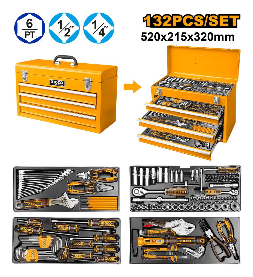 Set De 132 Herramientas En Valija Metalica Htcs221321 Ingco