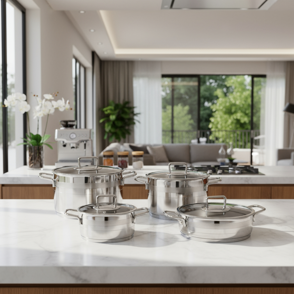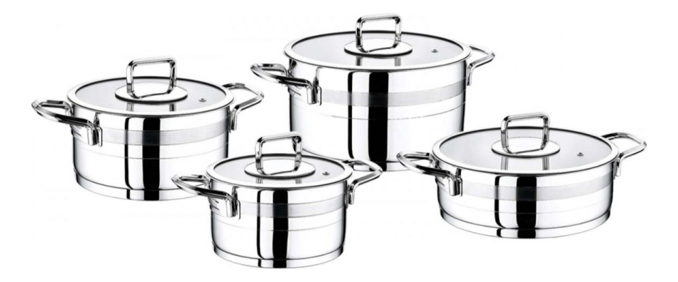 Set Ollas Evimsaray 8 Piezas Acero Inoxidable Sin Antiadherente Plateado