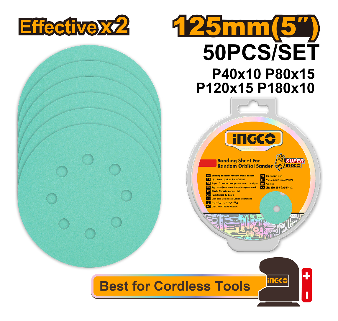 Set X 50 Lijas 5 125mm Para Lijadora Orbital Ingco Akrs1250