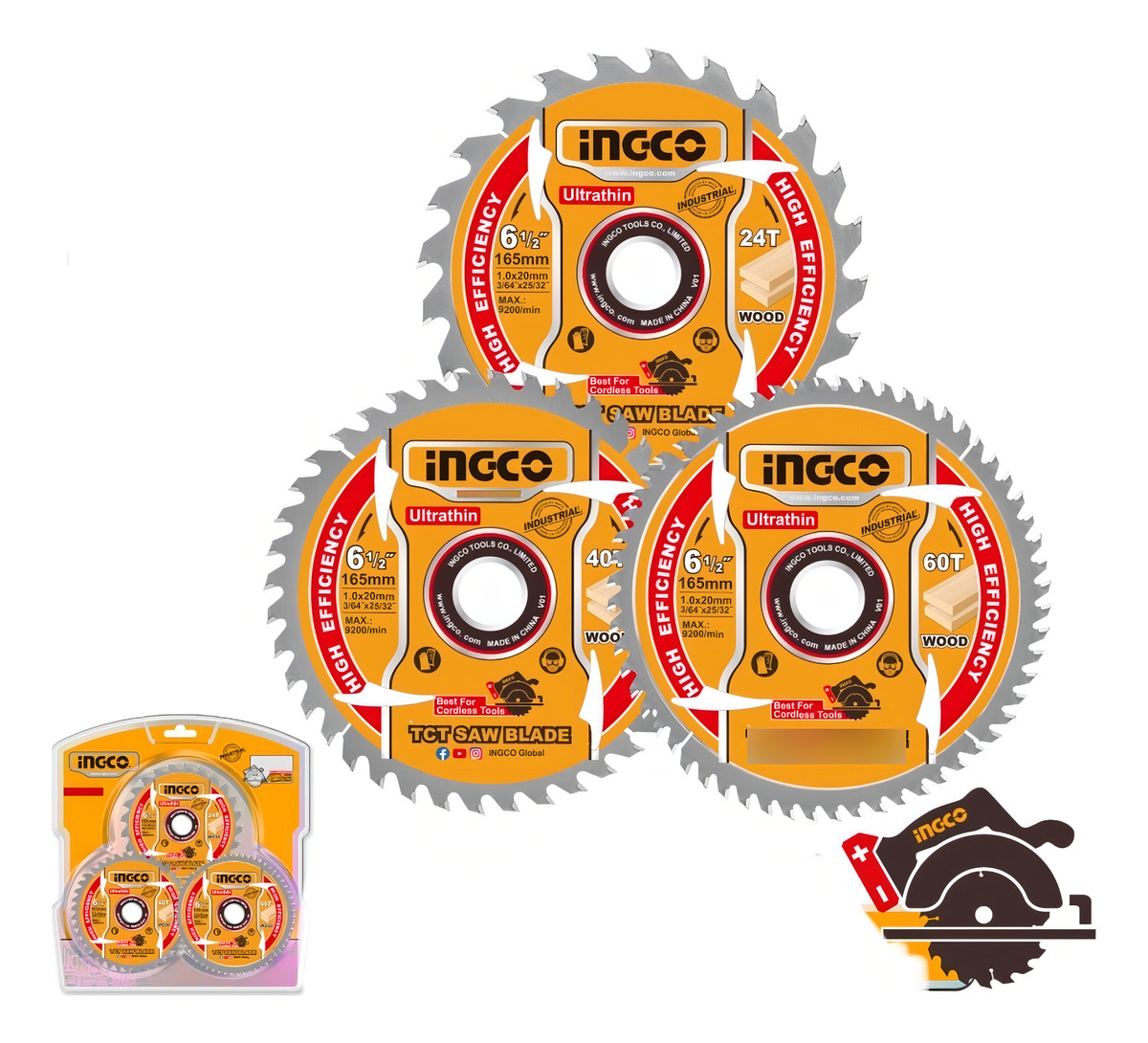 Set X3 Discos 6 1/2 165mm 24t/40t/60t Ingco – Tsb16503 Color Amarillo