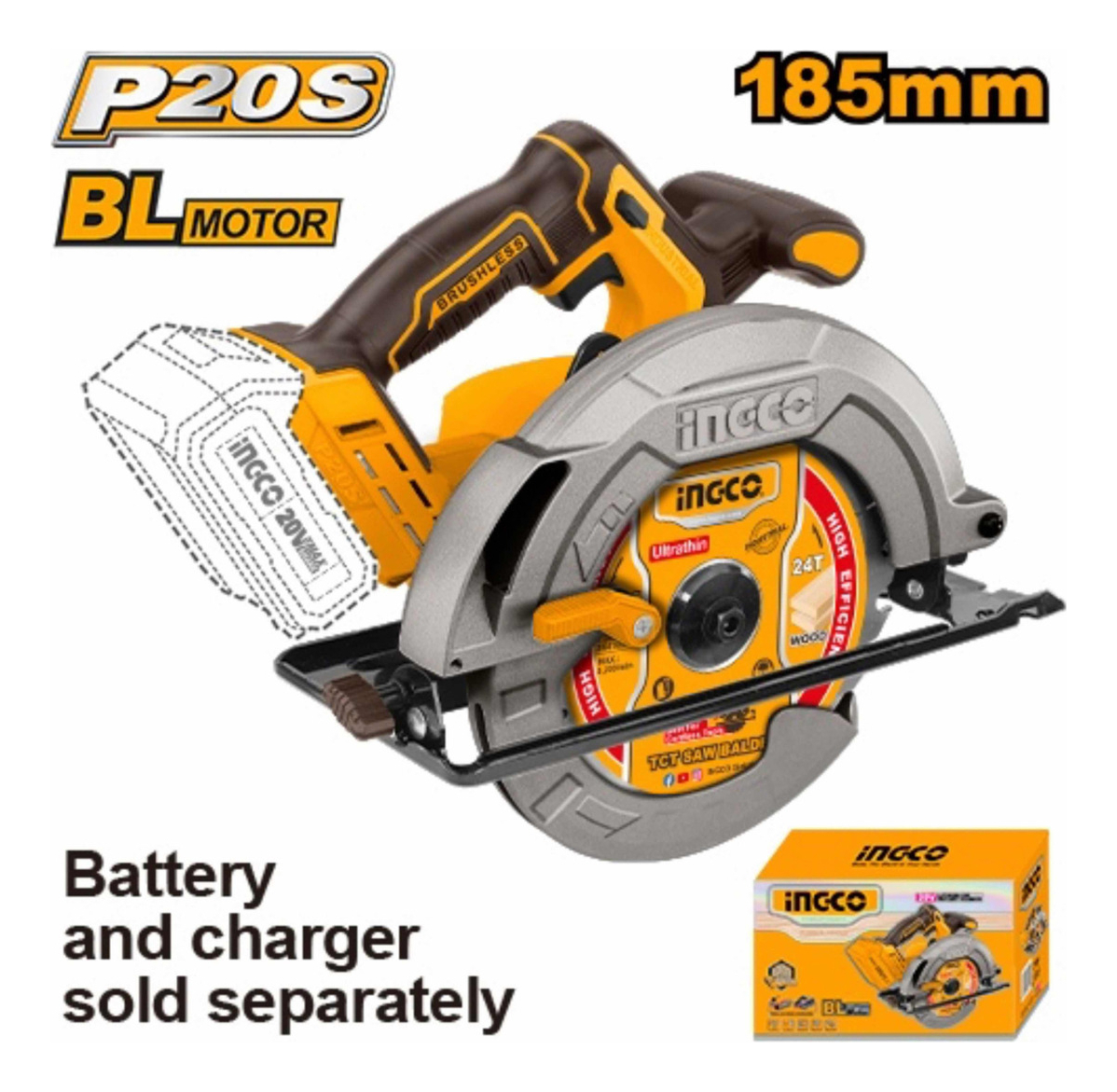 Sierra Circular 7 1/4 20v Sin Batería Ingco Csli1851