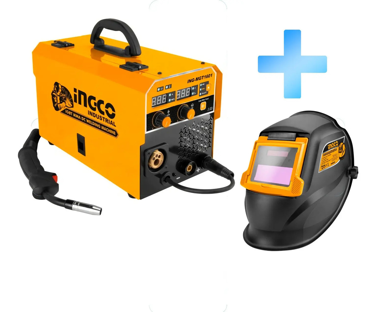 Soldadora Mig Mag Tig Mma Inverter Ingco Mgt1601 + Careta