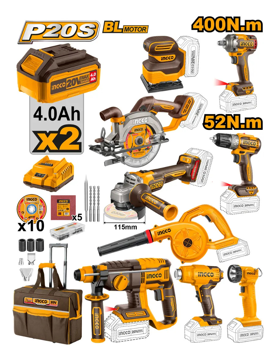 Kit Combo X9 Herram. 20v + Valija +2 Baterias Ingco Ckli2098