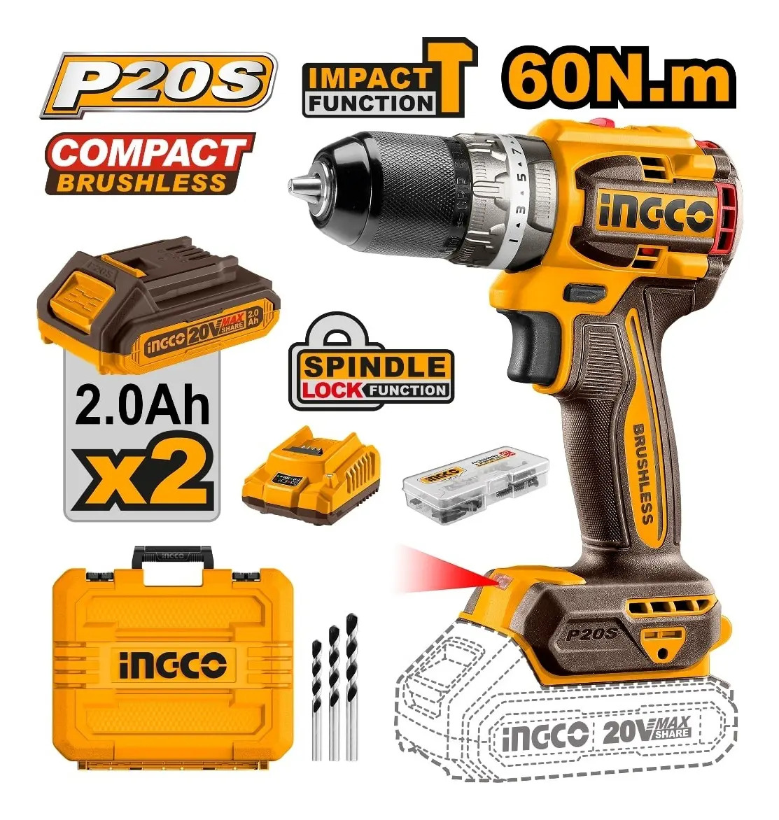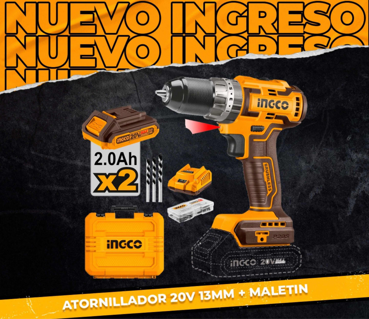 Taladro Atornillador A Batería 20v 13mm (bl Y 70nm) Ingco Ub