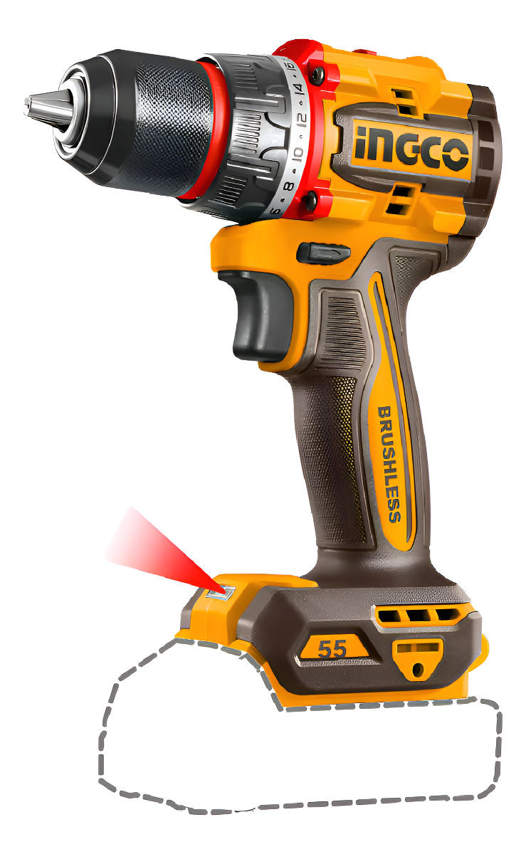 Taladro Atornillador Bateria Ingco 20v 55nm +2 Puntas S/bat