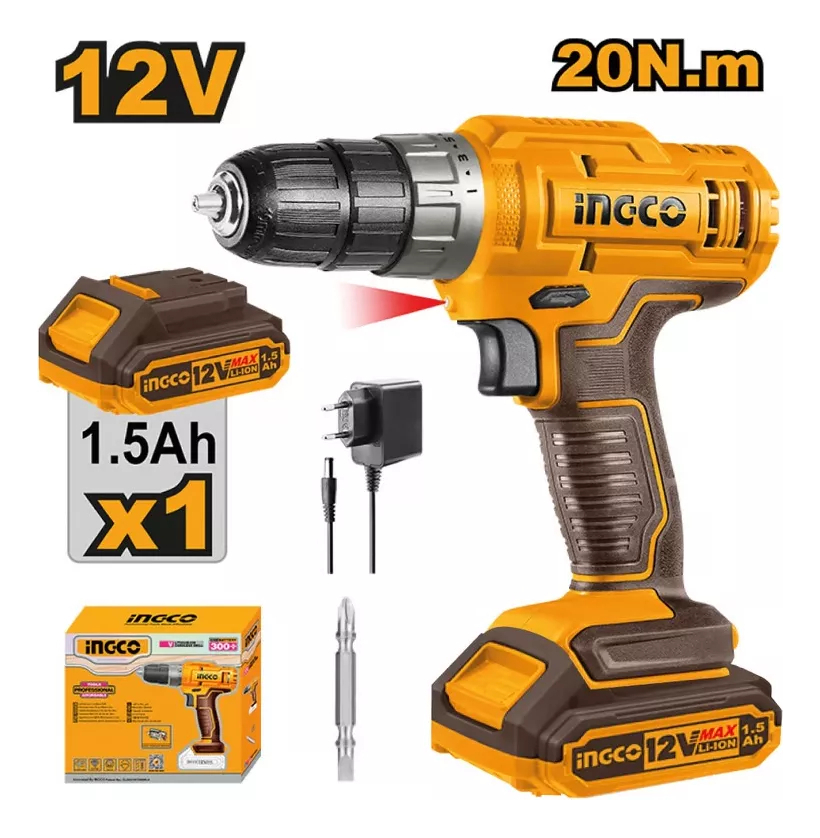 TALADRO INGCO INALAMBRICO 12V – C/ BAT.Y CARGADOR CDLI1211
