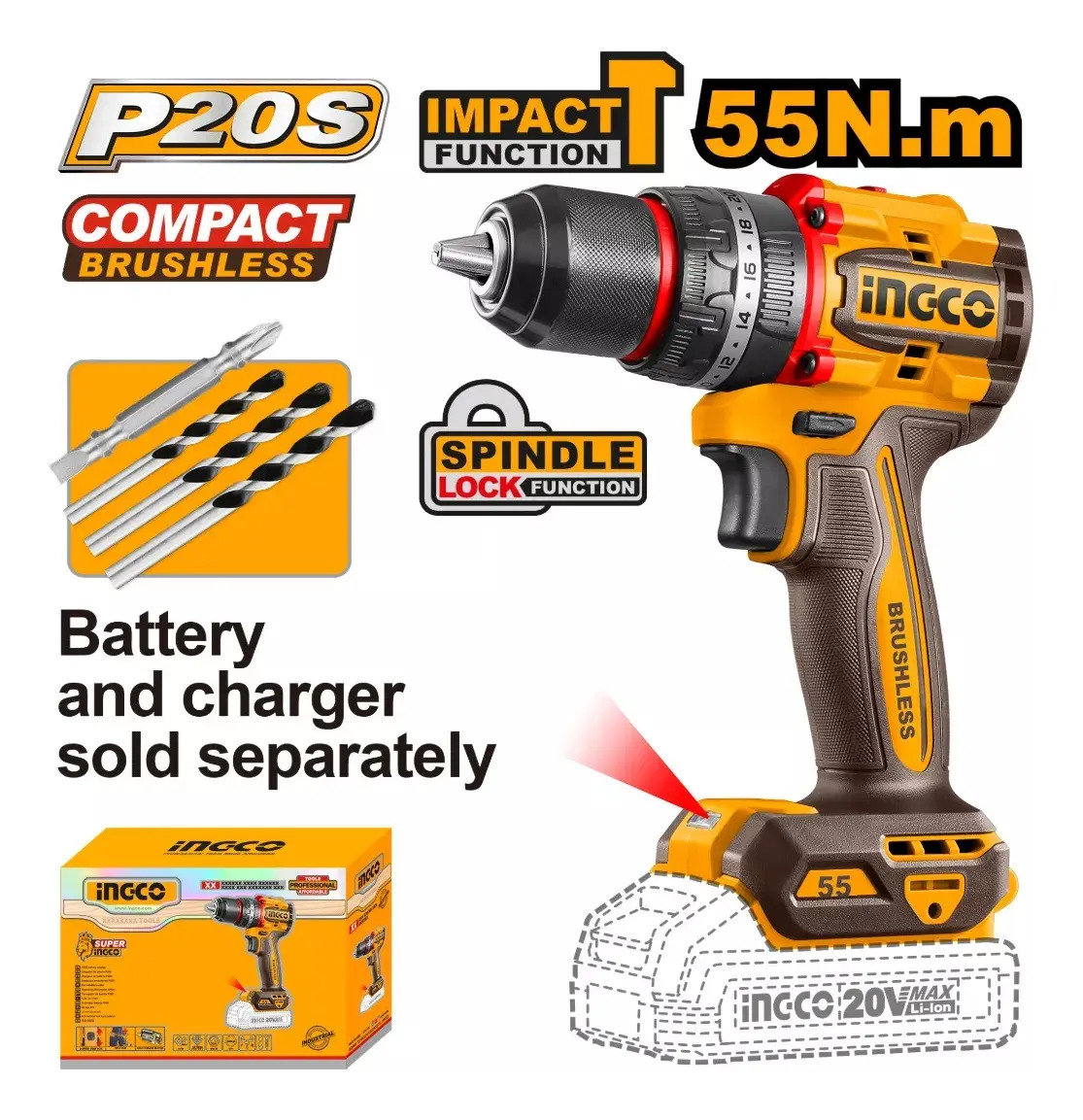 Taladro Atornillador Percutor 20v S/ Bateria Ingco Cidli2055