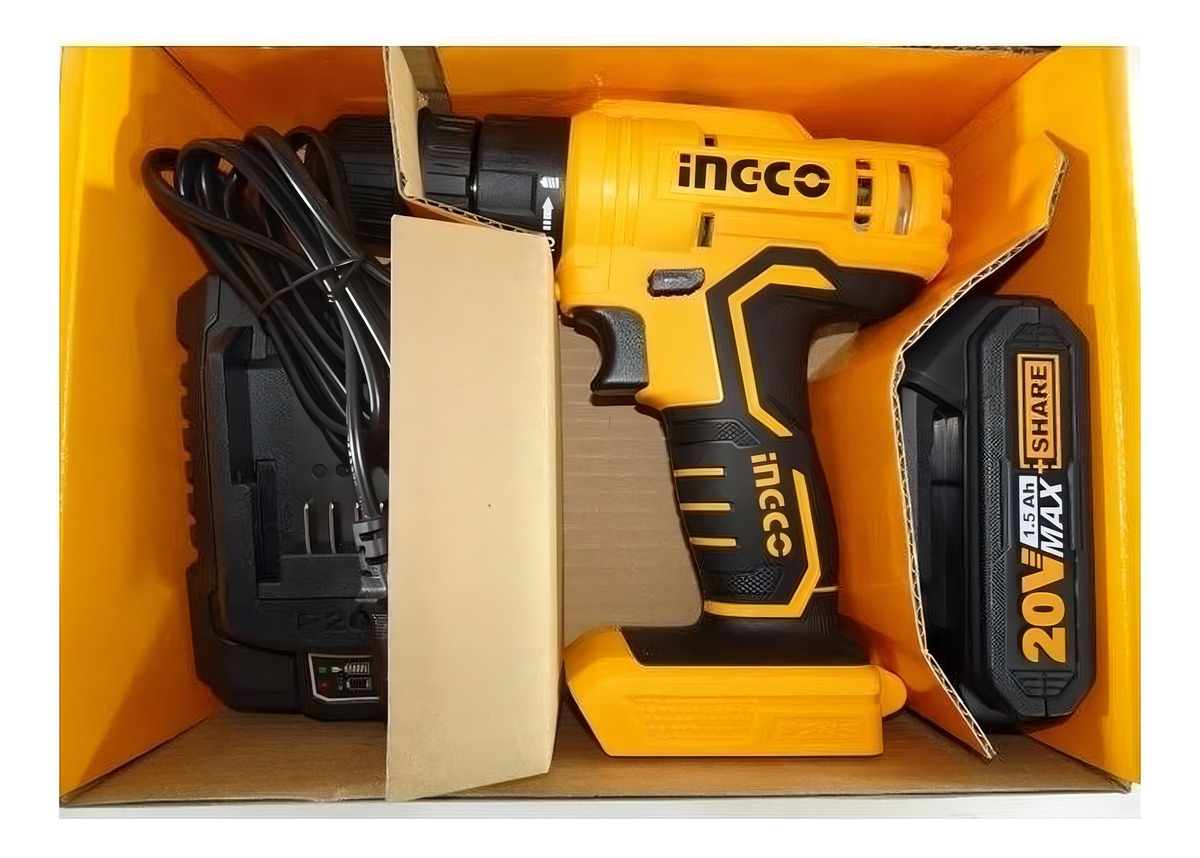 Taladro Inalámbrico Ingco Atornillador Con Batería Y Car Color Naranja
