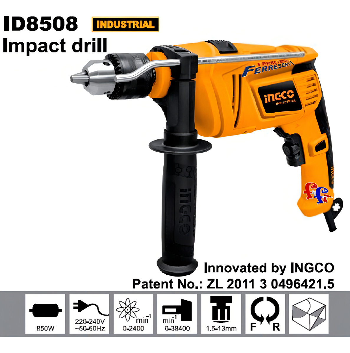 Ff Taladro Percutor Ingco 13mm 850w Id8508 Industrial Color Amarillo Frecuencia 50 cantidad