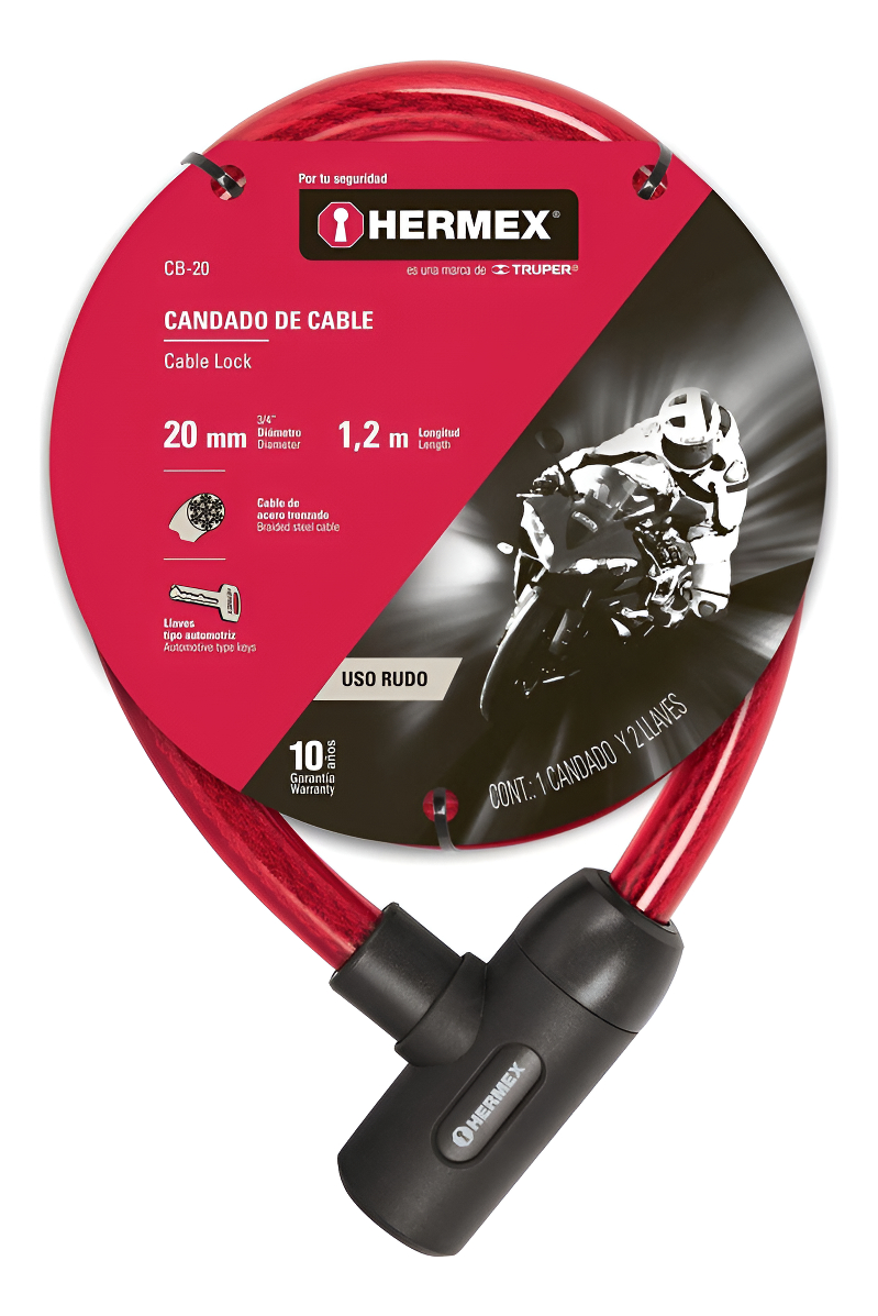 Tranca Bici Linga Acero 2 Llaves 120cm Ancho 20mm Hermex