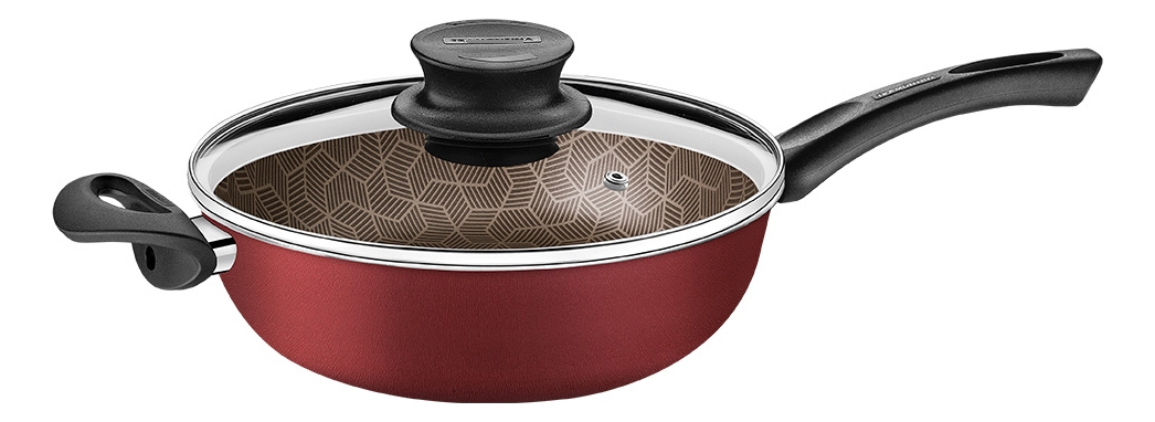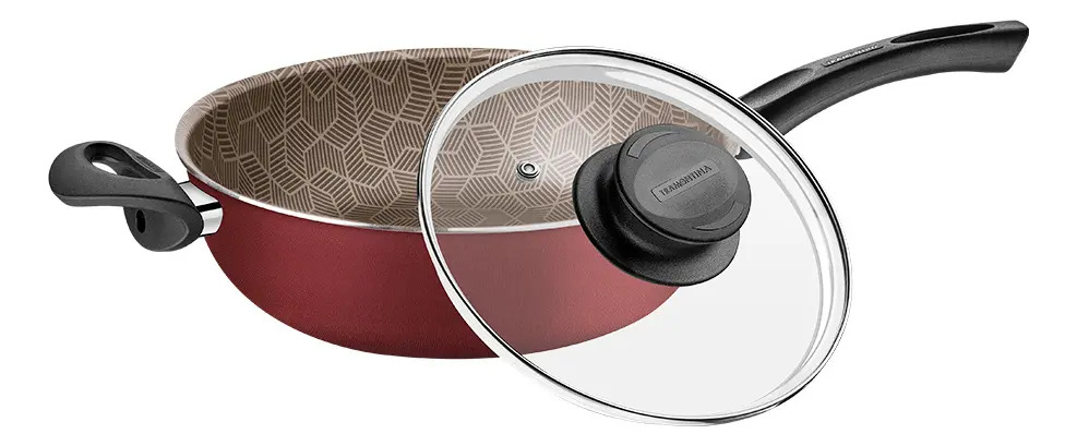 Wok Wokera Antiadherente 26cm Con Tapa Tramontina Color Rojo